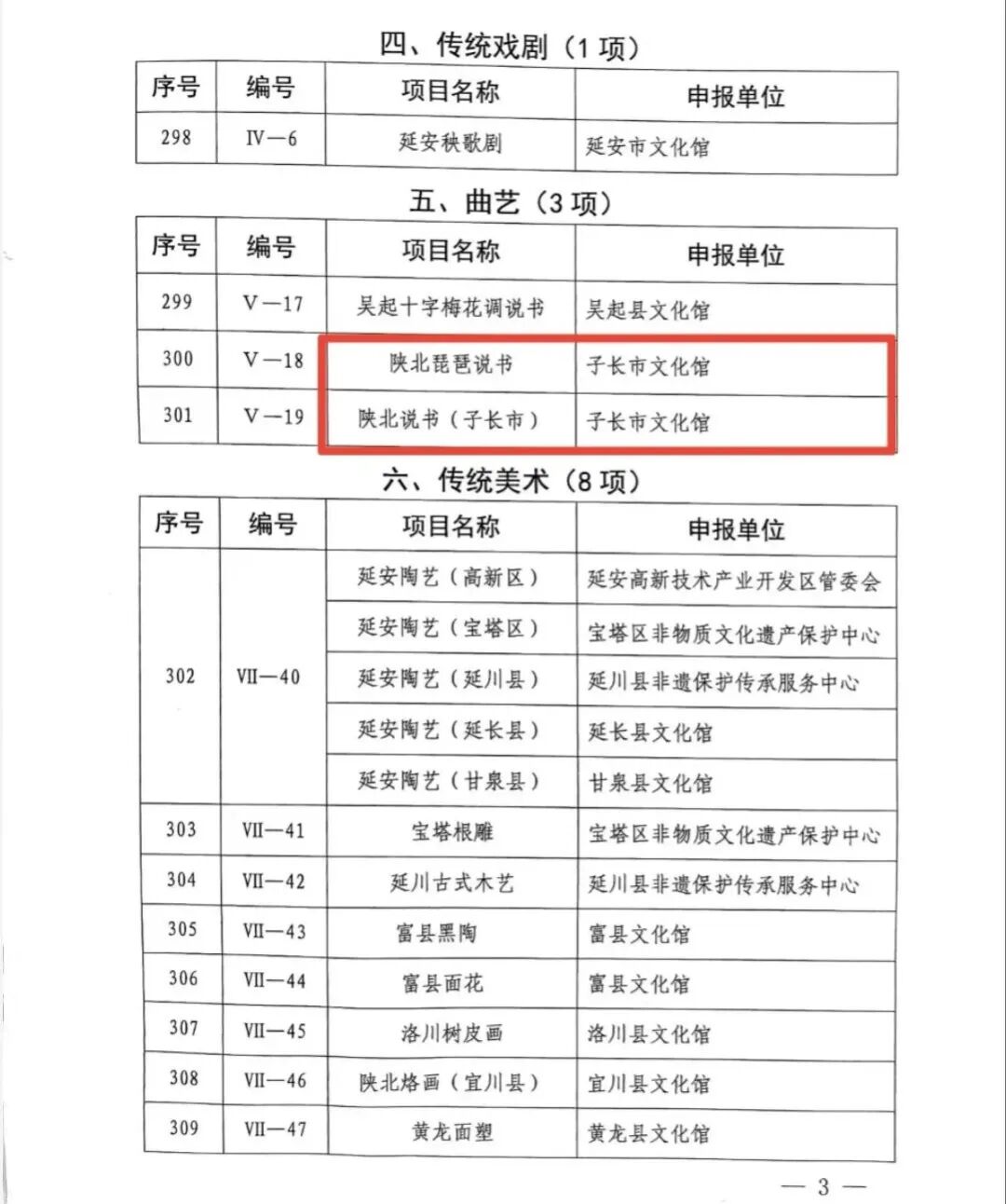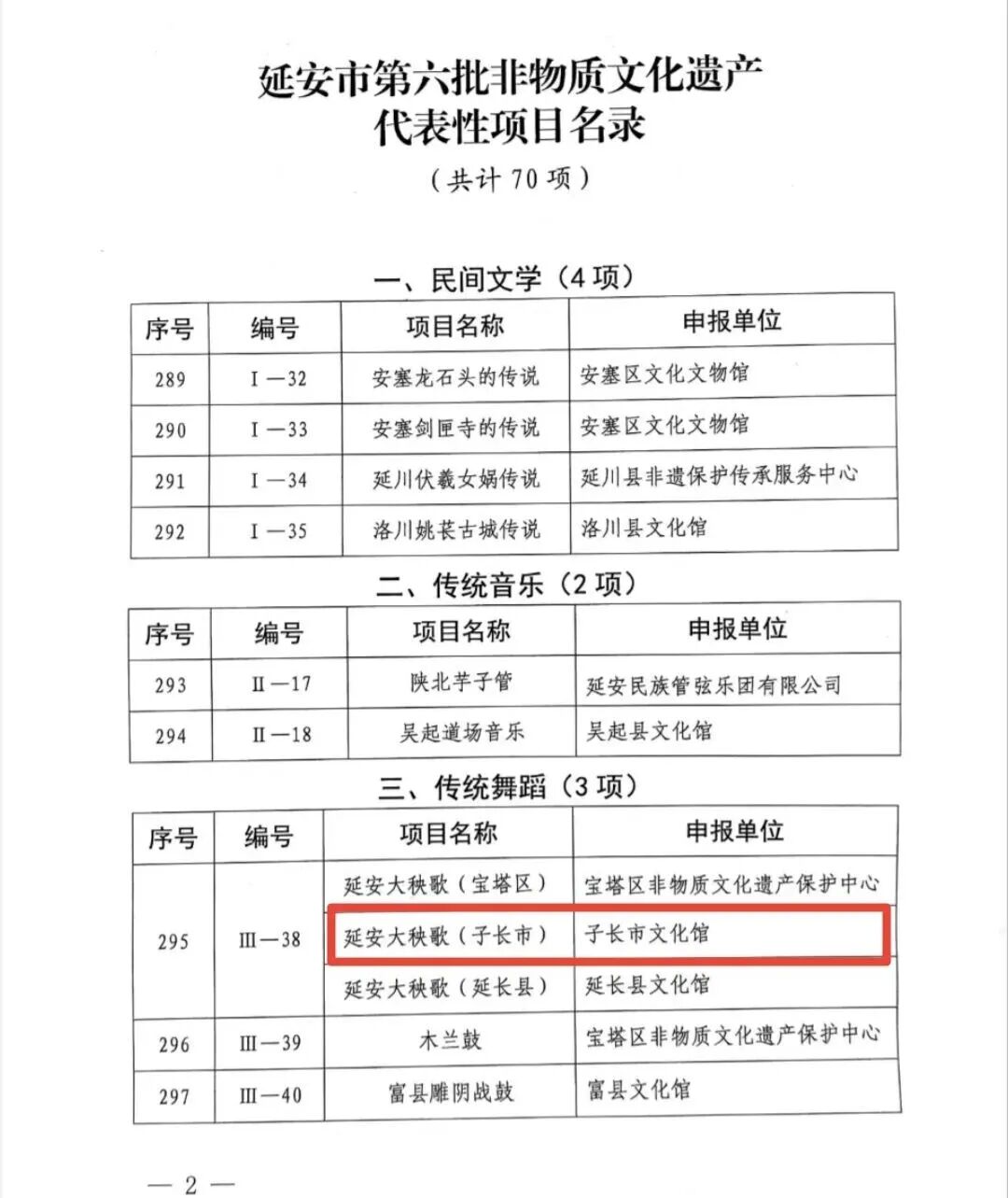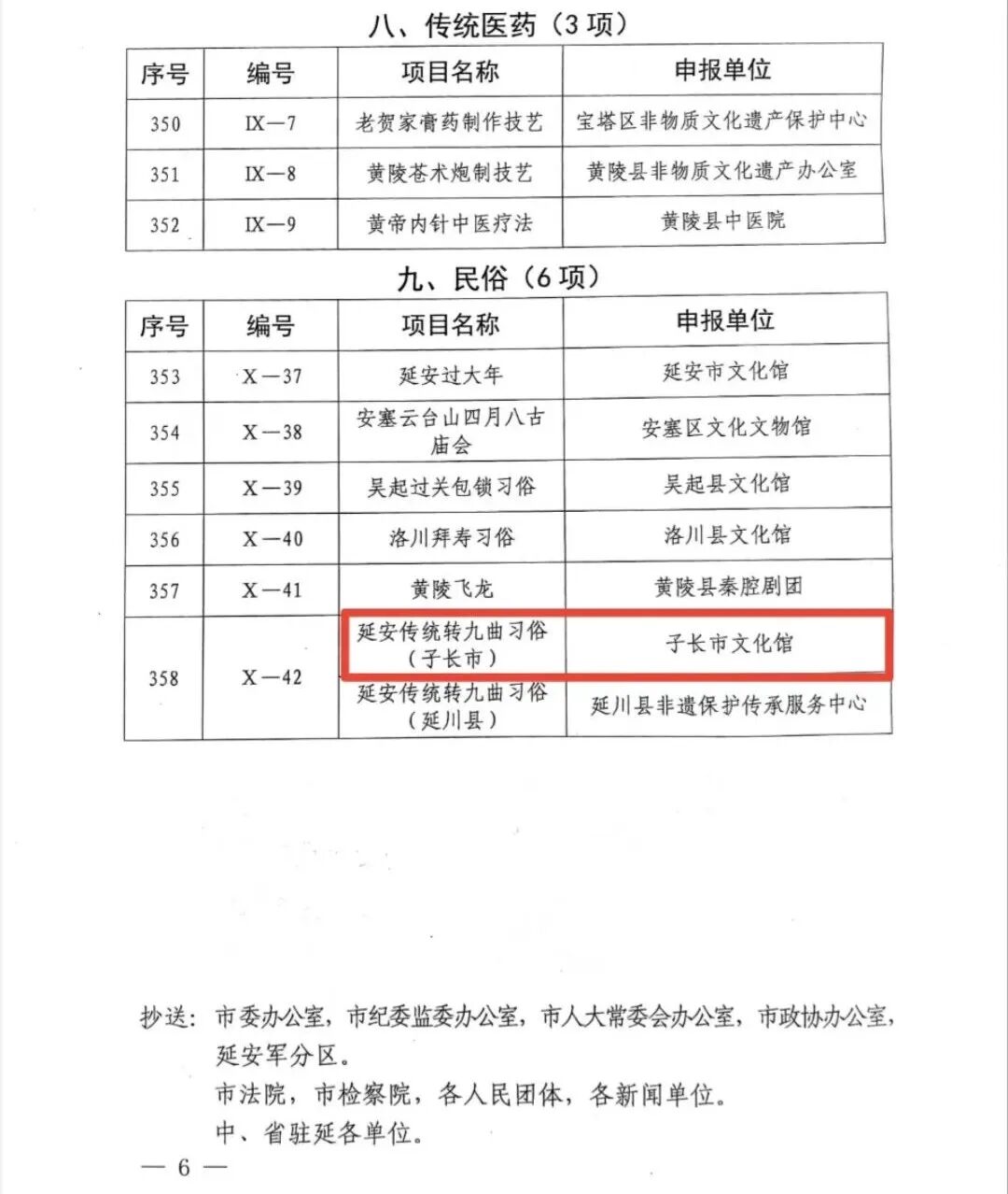 喜报!子长市7项非遗成功入选延安市第六批非遗名录时间:2026-01-21 近日,延安市人民政府公布了第六批市级非物质文化遗产代表性项目名录。经过申报、评审和公示,子长市7个项目入选,分别为:延安大秧歌(子长市)、陕北琵琶说书、陕北说书(子长市)、陕北枣糕制作技艺、子长唢呐制作技艺、延安粉条制作技艺(子长市)、延安传统转九曲习俗(子长市)。 近年来,子长市按照“保护为主、抢救第一、合理利用、传承发展”的工作方针,全面贯彻落实《延安市非物质文化遗产条例》,扎实做好非物质文化遗产代表性项目的传承、保护和合理利用工作,为弘扬中华民族优秀传统文化和满足人民群众日益增长的美好生活需要贡献力量。 目前,我市有国家级非遗项目1个、省级非遗项目6项、市级非遗项目增至19项、县级非遗项目现有67项。 |